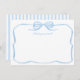 Cette carte de remerciement "Something Blue" est à la fois élégante et dans l'air du temps, avec un cadre à nœud ruban populaire. J'ai peint ceci à la main à l'aquarelle avant de le numériser. Le verso de l'invitation est un simple fond rayé bleu et blanc en seersucker.