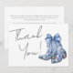 Quelque chose de bleu avant de le faire ! Carte de remerciement élégante à plat en forme de bottes de cowboy.