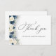 Fête des mariées bleu et blanc de la Marine Carte de remerciements plat. Cette douche nuptiale élégante et élégante est dotée d'une magnifique aquarelle peinte à la main Marine bleu et blanc Roses. Trouvez les articles correspondants dans la collection Blue and White Rose de la Marine.