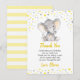 Carte de remerciement personnalisée éléphant jaune et gris pour l'anniversaire d'un bébé. Entièrement personnalisable avec le texte de votre choix. Conçue pour correspondre à notre collection Eléphant Jaune et Gris.
