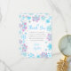Cette élégante et glamour carte de remerciement pour fête d'anniversaire présente des flocons de neige et des paillettes en faux brillant aquarelle bleu turquoise et violet sur fond blanc. Le texte combine une écriture manuscrite et des polices modernes sans serif pour un look classe et sophistiqué. C'est parfait pour une fête d'anniversaire d'hiver ou de Noël.