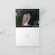 Élégante carte de remerciement de mariage avec feuille de défilement floral noir et vert, avec des feuilles de défilement blanches, des volutes, des boucles et des points vert lime sur fond noir. Il y a une bande verte avec le texte "Merci" en bas et votre photo à l'intérieur. Ce design élégant et chic fait partie d'une gamme de produits de papeterie de mariage et est parfait pour un mariage de printemps ou d'hiver.