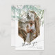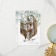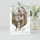 "Carte de remerciement photo à motif de feuilles géométriques modernes en or." Un feuillage de feuilles d'eucalyptus vertes pend au-dessus d'un cadre scintillant rose doré doux. Votre photographie remplace facilement l'exemple. Une belle police de calligraphie, "merci" ajoute une touche moderne. Vos noms et date de mariage (ou d'autres informations) sont facilement personnalisables. Au verso, on retrouve le même feuillage et un fond en bois de cottage blanc doux qui vous permet d'écrire à la main votre message personnel. Œuvre peinte et conçue graphiquement par l'artiste et designer licenciée à l'international, Audrey Jeanne Roberts, copyright.