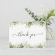 Simple carte de remerciement avec feuilles de verdure et écriture élégante. Vous pouvez personnaliser avec votre propre message de remerciement au verso ou si vous préférez ajouter votre propre message manuscrit, supprimez simplement le texte. Un moyen parfait de dire merci ! Conçu par Thisisnotme©