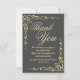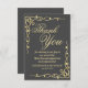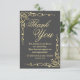 Élégantes et chic fausses feuilles d'or imprimées et vignes sur fond noir, carte de remerciement. Design très classique et sophistiqué pour tout événement ou occasion. Impression photo.