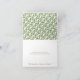 Carte de remerciement de mariage sur le thème de la Saint-Patrick avec un cœur vert contenant des trèfles blancs, des fers à cheval dorés porte-bonheur et une bannière personnalisable qui dit Merci. Un fond de style antique parchemin crème et blanc avec un motif subtil de dentelle damassée fait de cette carte de remerciement une note irlandaise. Ce design moderne vintage est parfait pour un mariage en mars, une douche de mariée, de couple ou de fiançailles. L'intérieur présente un motif en diagonale de cœurs et de trèfles. Il peut être personnalisé et monogrammé avec le monogramme et les initiales de la mariée et du marié à venir. Œuvre © Chrissy H. Studios, LLC. Tous droits réservés