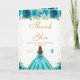 Carte De Remerciements Fille aux cheveux bruns floraux sarcelle Sweet Six