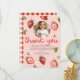 Cette mignonne et fantaisiste conception de remerciement pour le 1er anniversaire des filles comporte des illustrations adorables de fraise rose et de fleurs, et peut être personnalisée avec votre propre message de remerciement et la photo de votre fille. Le design « première baie » comporte également un motif à carreaux rouges assorti au dos. Le design parfait de ferme de baies pour l'anniversaire de votre petit bout !