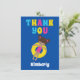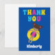 Carte de remerciement incroyable pour une fête d'enfants autour d'une piscine pour un enfant afro-américain dans l'équipe de natation pendant l'été. Caractéristiques une touche de couleurs vives et amusantes et une adorable fille noire nageant dans un tube intérieur.
