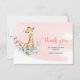 Carte De Remerciements Fille petite girafe poussiéreuse fleurs roses euc