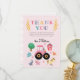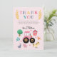 Cette carte de remerciement d'anniversaire pour fille au design mignon et rustique présente des dessins animés d'animaux de la ferme, avec un tracteur rose, un cheval, un cochon, un lapin, des poules, une grange rouge et des fleurs, et peut être personnalisée avec les noms des parents (ou de l'enfant). L'ajout moderne parfait sur le thème de la ferme pour l'anniversaire de vos enfants.
