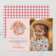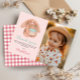 Cette carte de remerciement d'anniversaire pour enfants avec un lapin en peluche mignon et féminin comporte un jouet lapin doux sur le devant, un espace pour ajouter une photo et un motif à carreaux rose au dos. Parfait pour un thème d'anniversaire lapin, forêt ou filles mignonnes.