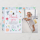 Cette carte de remerciement pour enfants douce et féminine présente un design floral avec des fleurs roses douces, des abeilles et des éléments botaniques printaniers, ainsi qu'un espace pour une photo de votre petit. Le dos comprend un motif assorti pour une apparence cohérente. Parfait pour envoyer un remerciement attentionné après un premier, deuxième, troisième ou quatrième anniversaire, avec du texte modifiable dans une typographie fantaisiste pour le personnaliser.