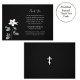 Carte de remerciement de funérailles chrétiennes orthodoxes avec des fleurs blanches uniques et délicates sur fond noir. Un moyen simple et beau d'exprimer votre gratitude à votre famille et à vos amis en cas de besoin. Personnalisez avec tous vos détails personnels et préférences, y compris le message personnel, le texte, la police, la taille / couleur / placement et le papier. N'hésitez pas à nous contacter si vous avez des questions. Merci !