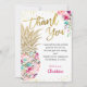 Carte De Remerciements Fleur de Ananas Or Rose Tropical