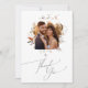 Voici notre fleur sauvage d'automne boho stupéfiant | carte de remerciements photo plat, qui embrasse un design simple et moderne reflétant la beauté de la nature. Doté de fleurs d'aquarelle séchée pressée et de feuilles en terre cuite, il saisit l'essence des teintes orangées brûlées d'octobre, créant un design minimaliste mais classique qui respire la chaleur et le charme. Le design a une touche fantaisiste d'élégance qui inspire une délicate atmosphère vintage, où les feuilles verts sauge, les accents de cuivre rouille et les tons de terre fleurie créent un style unique et inoubliable. Offrez-vous la beauté de votre journée spéciale avec un produit qui capture un design minimal mais unique et vous préparera le décor pour une expérience mariage vraiment mémorable. Contactez-nous pour toute question sur le design, et laissez-nous vous aider à faire le mariage de vos rêves.