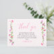 Carte de remerciement Pink Wildflower avec message de remerciement personnalisé et bordure florale délicate de jolies fleurs sauvages roses. "Merci" est écrit en calligraphie élégante et vous pouvez facilement personnaliser l'événement pour une douche de couple, une douche de mariage, un brunch de mariage, etc. Design féminin doux avec des fleurs sauvages aquarelles délicates et aériennes dans des nuances de rose. Design botanique inspiré de la nature avec des fleurs de jardin de campagne romantiques et des épis de fleurs. Veuillez parcourir ma collection Pink Wildflower pour des articles assortis ou me contacter pour créer les modèles dont vous avez besoin.
