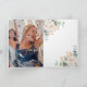 Fond blanc. Fleurs blanches et végétation d'eucalyptus. Le Merci est écrit avec une grande police de style lettré à la main. A l'intérieur : Une grande photo à l'intérieur et un espace pour écrire à la main. Retour : 2ème photo.