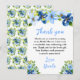 Carte De Remerciements Fleurs bleues et navy avec feuillage pour Baby Sho
