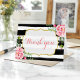 Carte De Remerciements Fleurs de paillettes dorées et rayures à l'aquarel