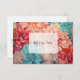 Carte de remerciement de mariage printanier aux fleurs sarcelle, corail et champagne. Idéal pour un mariage de jardin printanier.