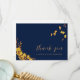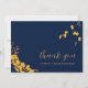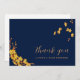 Carte De Remerciements Fleurs dorées simples élégantes bleu marine