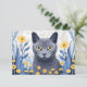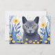 Carte De Remerciements Fleurs Jaunes Chat Bleu Russe