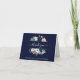 Cette carte de remerciements pliée mariage design et branchée est ornée d'une armature moderne en aquarelle remplie de fleurs de couleur nautique. Des fleurs d'hydrangée, de pivoine et d'anémone apparaissent dans les tons bleu marine, bleu clair et rose vif avec des feuilles verts et beiges neutres, sur un arrière - plan bleu marine foncé.