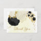 Fleurs noires et blanches romantiques avec carte de remerciements mariage botanique feuille d'or. Les détails de la parties scintillant sont simulés.