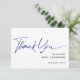 Simple merci minimaliste moderne de style script en dégradé de bleu violet pour carte de mariage. Au dos avec des fleurs sauvages dans un pot. Dégradé de bleu violet avec texte personnalisable.