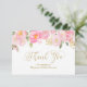Carte De Remerciements Fleurs roses et or avec calligraphie dorée