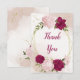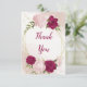 Carte de remerciement de mariage magnifique avec des fleurs roses et magenta et des feuilles vertes
