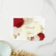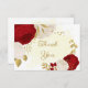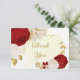Fleurs romantiques rouges et blanches avec carte de remerciements mariage botanique feuille doré. Les détails de la parties scintillant sont simulés.