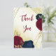 Carte De Remerciements fleurs rouges marine or feuille mariage