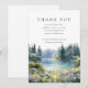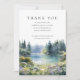 Une carte de remerciement de deuil funéraire élégante avec une scène de lac floral de fleurs sauvages de forêt de aquarelle. Conçue par Thisisnotme©
