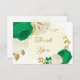 Fleurs romantiques vert émeraude et blanc avec carte de remerciements mariage botanique feuille d'or. Les détails de la parties scintillant sont simulés.