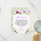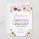 Cette belle et élégante carte de remerciement de baby shower pour mariage présente des fleurs violettes et du feuillage aquarellés. Le texte combine une écriture manuscrite et des polices serif pour un look stylé et moderne. C'est parfait pour un baby shower champêtre printanier.
