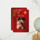Ce carte de remerciements chinois mariage présente des fleurs d'art de ligne d'or, un signe artistique or double bonheur et des mots "merci" Dans un script manuscrit moderne sur un arrière - plan chatoyant rouge. Avec un message de remerciement personnalisé, votre photo et vos noms et date mariage.