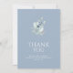 Express votre gratitude dans le style avec cet élégant carte de remerciements floral bleu poussiéreux. Le design minimaliste aux délicats accents floraux dans un bleu poussiéreux doux est parfait pour ajouter une touche intemporelle et personnelle à votre papeterie mariage. Customisez le message à l'intérieur pour le rendre unique. Imprimé sur des cartons haut de gamme, ce carte de remerciements s'associe parfaitement à votre suite mariage complète pour un look cohésif.