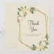 Le Merci Mariage chic, élégant et formel présente des roses mariages romantiques en blanc vanille aquarelle avec des touches de rose roux affichées dans la verdure verdoyante sur un arrière - plan chic en coquille d'oeuf. Un cadre en cristal géométrique couleur or métallique scintillant apporte une touche tendance. La formulation classique et traditionnelle apporte une sophistication intemporelle. Personnalisez le design mariage avec vos détails dans des lettres et des scripts gris charbon élégant. Le dos de la carte est une simple couleur coquille d'oeuf correspondante. N'hésitez pas à me contacter à l'adresse invitationsuites@gmail.com si vous avez des questions concernant ceci ou l'un de nos designs.