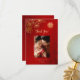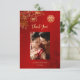 Photo carrée correspondant aux invitations carrées de l'invitation avec ce design.Ce carte de remerciements mariage chinois présente des fleurs d'art de ligne or, un signe de bonheur double or artistique et des mots "merci" Dans un script manuscrit moderne sur un arrière - plan chatoyant rouge. Avec un message de remerciement personnalisé, votre photo et vos noms et date mariage.