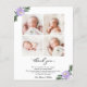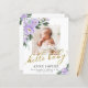 Jolie aquarelle fleurie violette, faire-part de naissance photo, et carte de remerciements. Facile à personnaliser avec vos photos et détails bébé. Contactez-moi par conversation si vous avez des questions sur l'oeuvre ou avez besoin d'une personnalisation. VEUILLEZ NOTER : Pour obtenir de l'aide sur les commandes, l'expédition, l'information sur les produits, etc., contactez le service à la clientèle de Zazzle directement https://help.zazzle.com/hc/en-us/articles/221463567-How-Do-I-Contact-Zazzle-Customer-Support-.