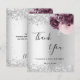 Carte de remerciements floral rose bordeaux argent
