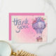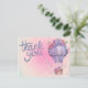 couleur rose pâle avec ballon à air chaud bleu et fleurs Carte de remerciement