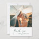 Carte de remerciements de mariage élégante avec une disposition simple et minimale avec une combinaison d'une police serif classique et d'une calligraphie manuscrite moderne sous votre photo préférée. Le dos a une deuxième image avec votre message personnalisé. Le thème de couleur est à feuillage persistant / vert forêt et peut être modifié dans l'outil d'édition de conception. Cette élégante carte de remerciements typographique est idéale pour un mariage formel.