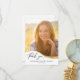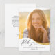 Cette carte de remerciement de fin d'études en photo de la promotion 2022 présente une grande photo avec une forme de vague moderne et est accentuée par une vague dorée supplémentaire et un texte manuscrit tendance. Le verso offre un texte personnalisé pour un remerciement personnel.