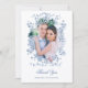 This classic and romantic frame is a modern adaptation of an historic French etched frame of dusty blue intertwined roses, flowers, foliage and ribbons ca 1770 by Rococo designer Pierre Ranson. It includes customizable text fields, photo template and a complementary floral graphic with suggested message on the back.