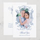 Carte De Remerciements French Blue Flowers & Ribbons Wedding Photo