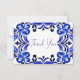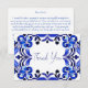 Blue Majolica Mexican Talavera espagnol français tuiles méditerranéennes enterrement de vie de jeune fille cartes de remerciement. Tuiles couleurs bleues aquarelle moderne avec police d'écriture manuscrite moderne