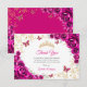 Carte De Remerciements Fuchsia Pink Gold Floral Quinceanera